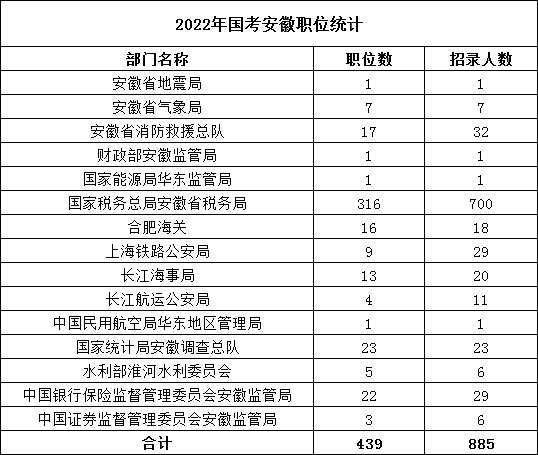 點擊下載查看:2022國考安徽地區(qū)職位表(439崗位 招885人)