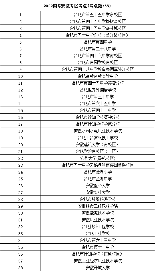 2022年國考安徽考區(qū)具體考點