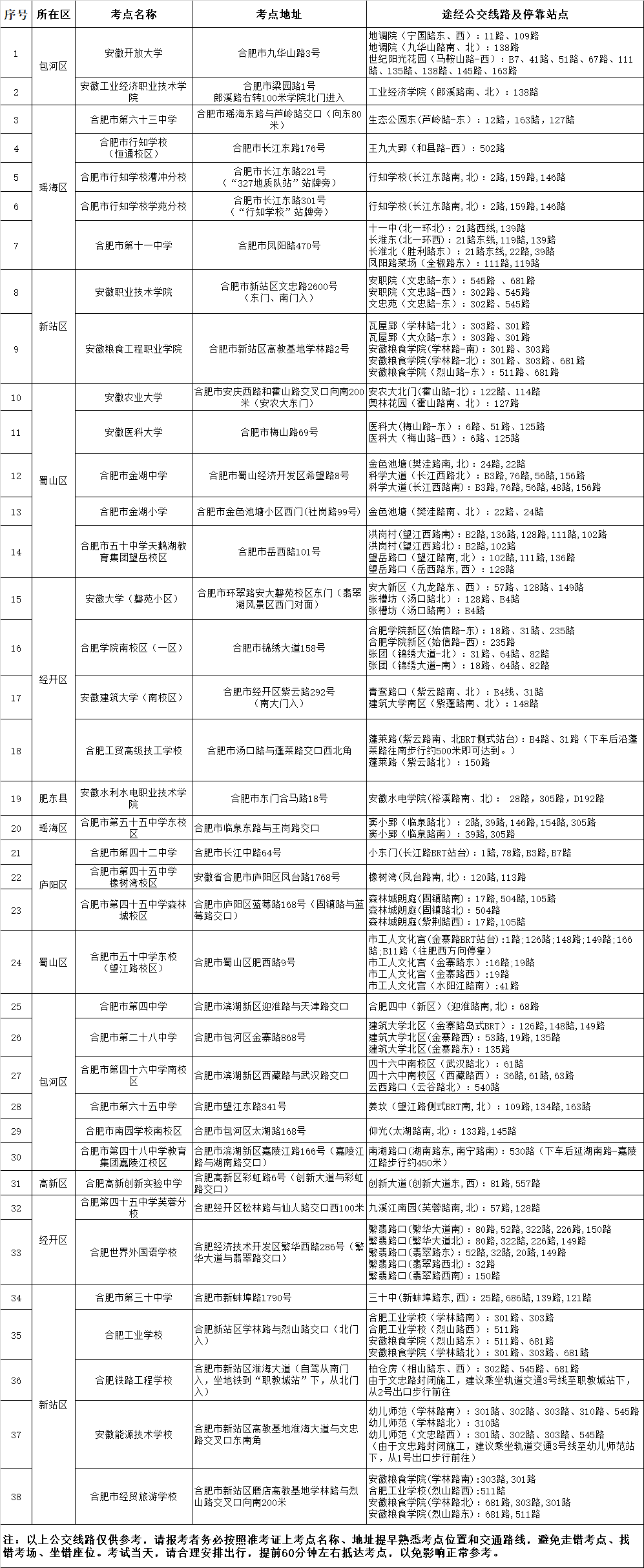 2022年國(guó)考安徽考區(qū)具體考點(diǎn)
