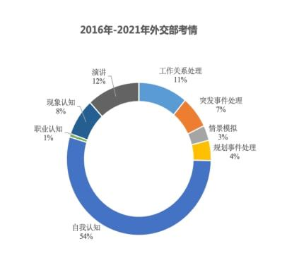我們對(duì)外交部幾年試題進(jìn)行了梳理和研究,考查內(nèi)容既涉及工作關(guān)系處理、突發(fā)事件處理、規(guī)劃事件處理、職業(yè)認(rèn)知、現(xiàn)象認(rèn)知這五種基礎(chǔ)題型,也包括自我認(rèn)知、演講、情景模擬這三類小眾題型。