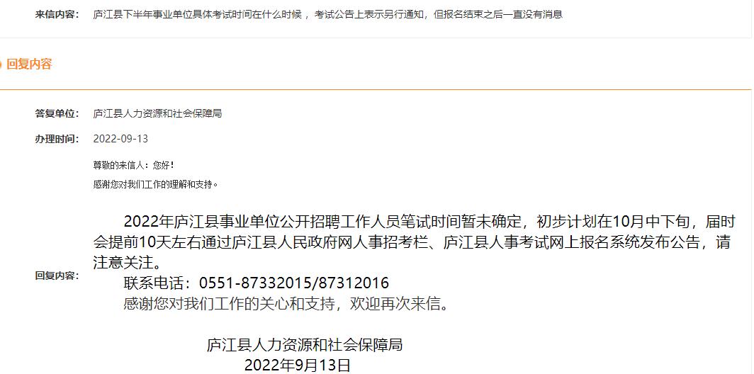 來(lái)信標(biāo)題:2022廬江事業(yè)單位考試時(shí)間