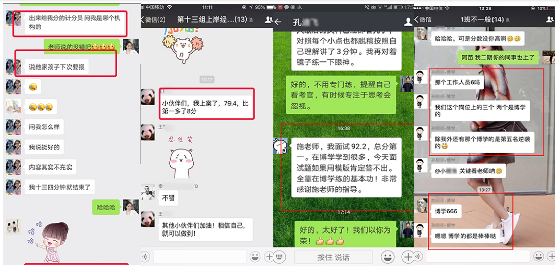 在2010年—2018年國考中,很多人僅僅是因?yàn)榭戳司W(wǎng)上博學(xué)教育公務(wù)員班的幾段視頻,就毫不猶豫地選擇博學(xué)教育,最終成功地實(shí)現(xiàn)了他們的公務(wù)員之夢(mèng)。2010年安徽省考高陽同學(xué)面試取得88.4的高分,一舉從筆試第23名躍居為綜合排名第一名,成為巢湖市面試狀元;胡卓然同學(xué)以86分的成績勇奪南京市第一名,被南京市國土資源局錄取。廣東的鄭滋潤同學(xué),數(shù)次公考面試失敗,2011年慕名來到博學(xué)施老師門下,經(jīng)過七天學(xué)習(xí),脫胎換骨,以91分的成績遙遙領(lǐng)先對(duì)手被財(cái)政部駐深圳市專員辦錄?。?011年安徽省考季毓同學(xué)面試取得88的高分,成為馬鞍市面試狀元;2012年上海的潘安安同學(xué),以88.3的高分被上海海關(guān)隸屬海關(guān)通關(guān)業(yè)務(wù)部門錄取。2013年福建的王子熙同學(xué),以89.4的高分被廈門海關(guān)廈門地區(qū)隸屬海關(guān)或辦事處錄取。2013年安徽省考牛園園同學(xué)取得面試86.8分,成為亳州市面試狀元!2014年安徽的曹珍同學(xué),以86.8的成績勇奪安徽省直面試狀元,被安徽省女子監(jiān)獄錄取。2015年國考安徽的曹燦同學(xué),以92.25分的成績被中國銀行業(yè)監(jiān)督管理委員會(huì)安徽監(jiān)管局錄?。?015年安徽省考陳雯同學(xué)以面試87.2的高分勇奪蕪湖市面試狀元;趙錦同學(xué)以面試86.4的高分取得天長市面試狀元;查菁文同學(xué)以面試86的高分取得定遠(yuǎn)縣面試狀元。2016年國考面試,張雨豪以91分的成績被甘肅省國家稅務(wù)局錄取。2016年安徽省考陳蓉同學(xué)以面試86.8分取得馬鞍山市非鄉(xiāng)鎮(zhèn)公務(wù)員面試狀元;2017年國考,劉大偉勇奪山東省面試狀元,以98.67分被商務(wù)部錄??;阮帆同學(xué)面試取得91.33分,上海市國稅錄??;鄭想同學(xué)面試取得90.3分,上海國稅錄;2017年安徽省考顧博賢同學(xué)以面試88分取得利辛縣非鄉(xiāng)鎮(zhèn)公務(wù)員面試狀元。2018年國考徐起以87.33分被中央國家機(jī)關(guān)工委錄取,夏鈺以88.33分被中國浦東干部學(xué)院錄取。2018年安徽省考,周陽以83.8分取得銅陵市鄉(xiāng)鎮(zhèn)層級(jí)面試狀元;魏宇以82.8分取得亳州市鄉(xiāng)鎮(zhèn)層級(jí)面試狀元!